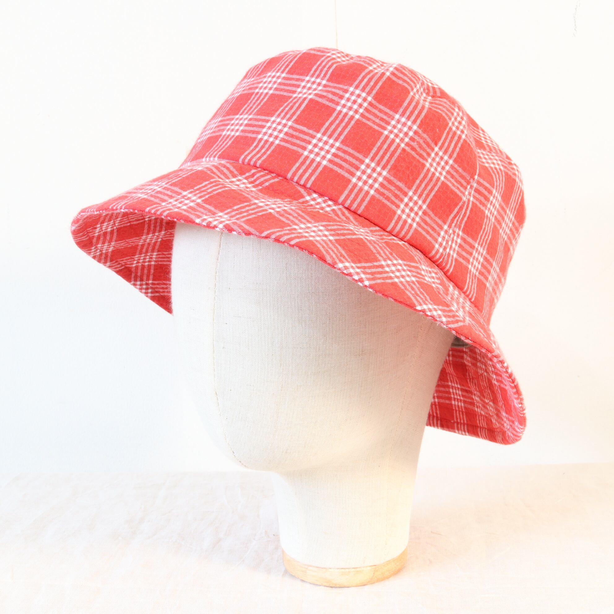 シンプルなチェックだけど存在感のある配色の生地を使用したハットです