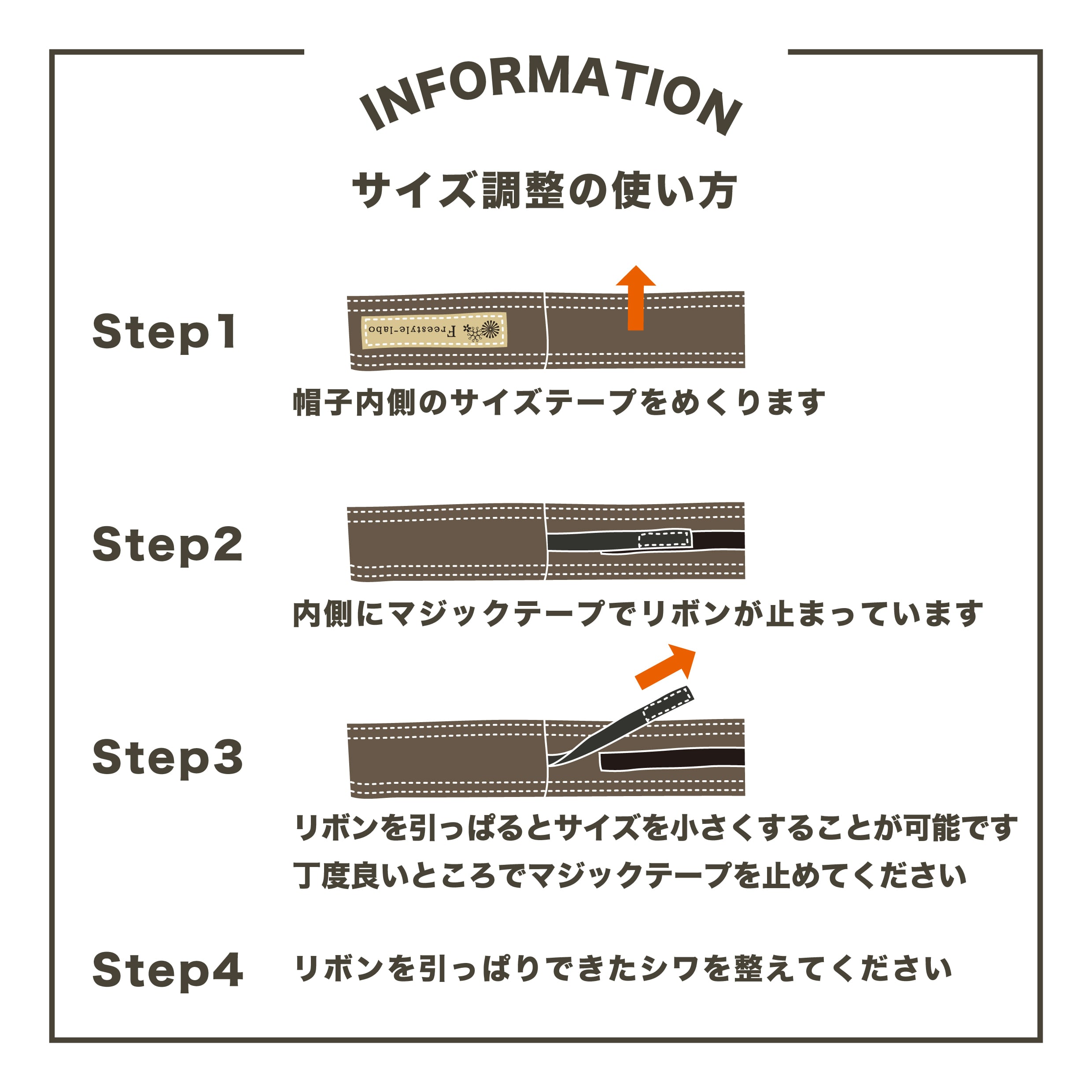 サイズ調節前の帽子サイズは58.0cmですが、56cm程度までサイズを縮める事が可能です