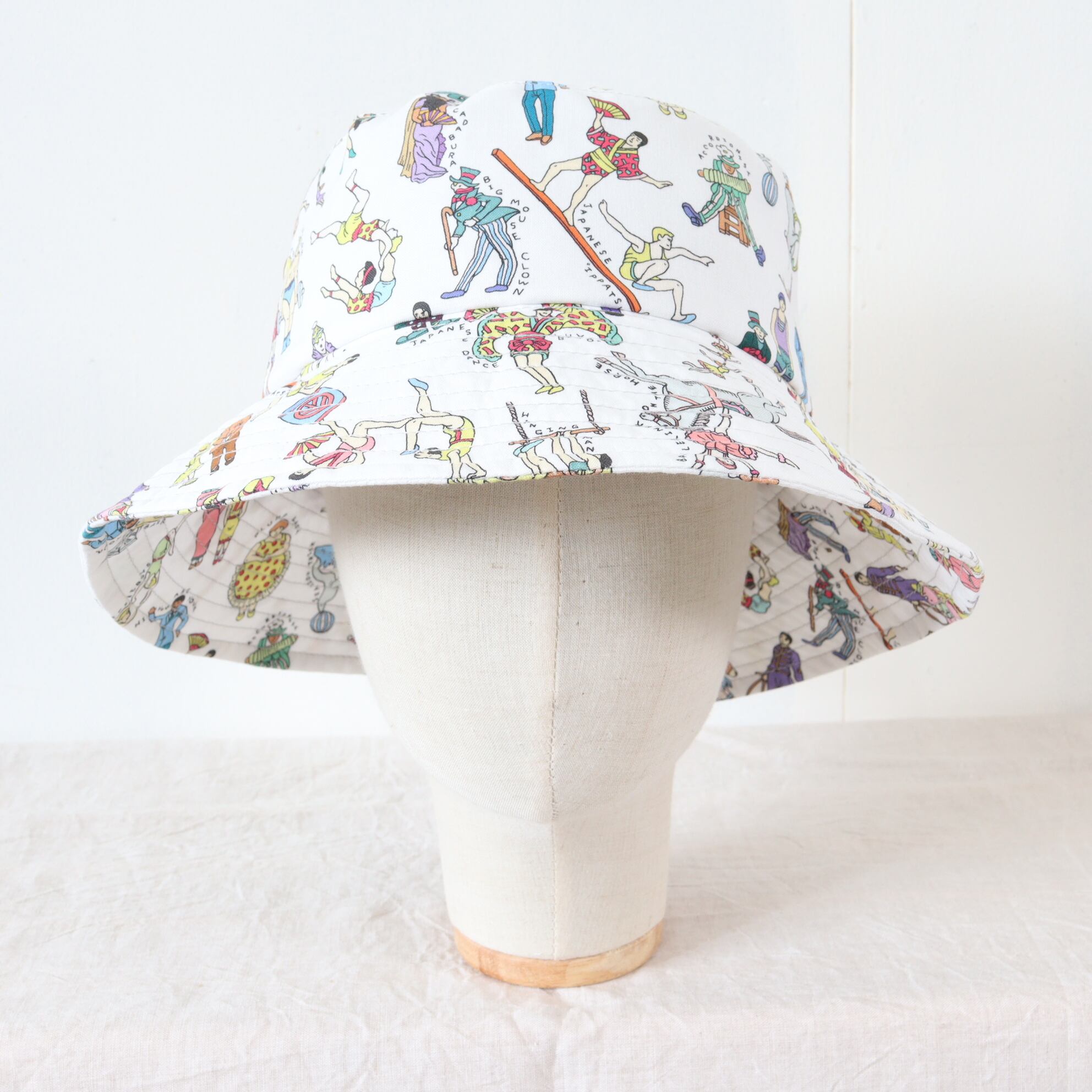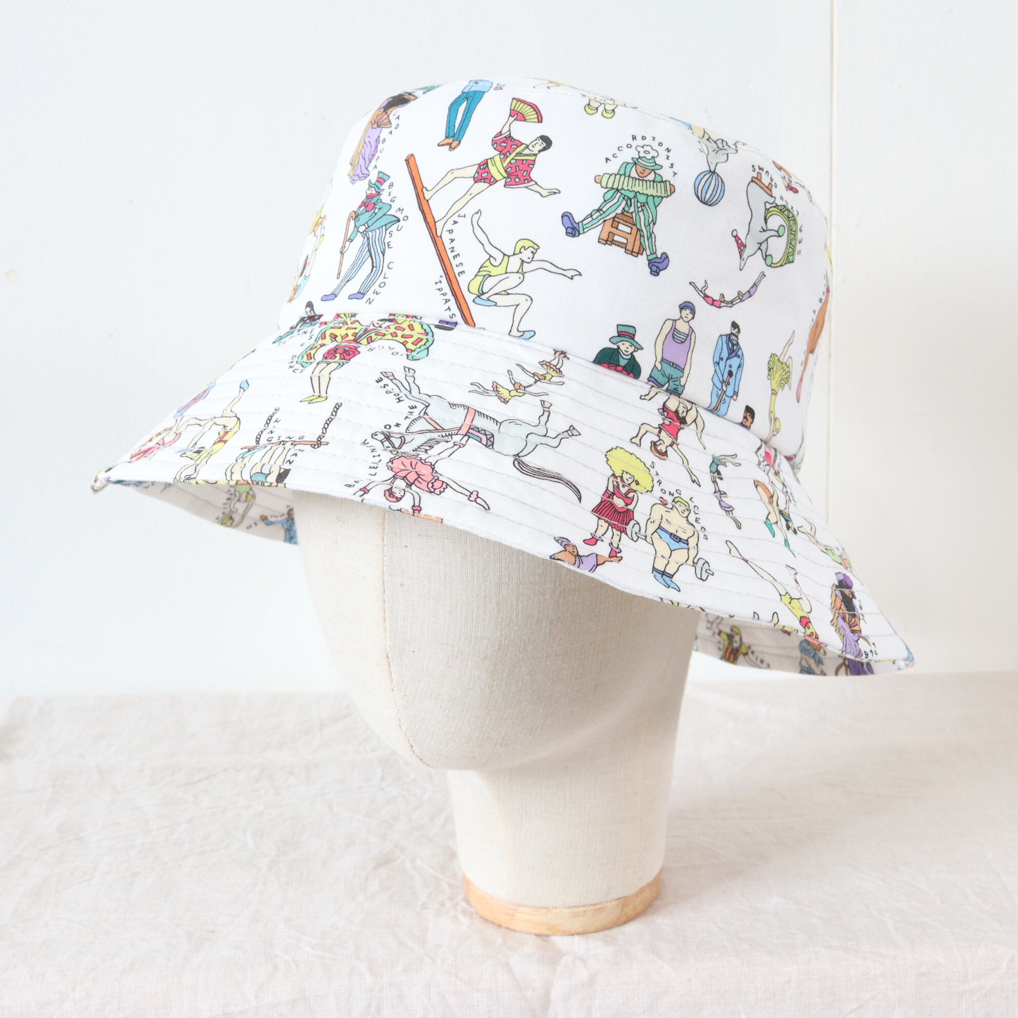 サーカス団がやってきた街のようなカラフルで楽しいプリント柄のハット