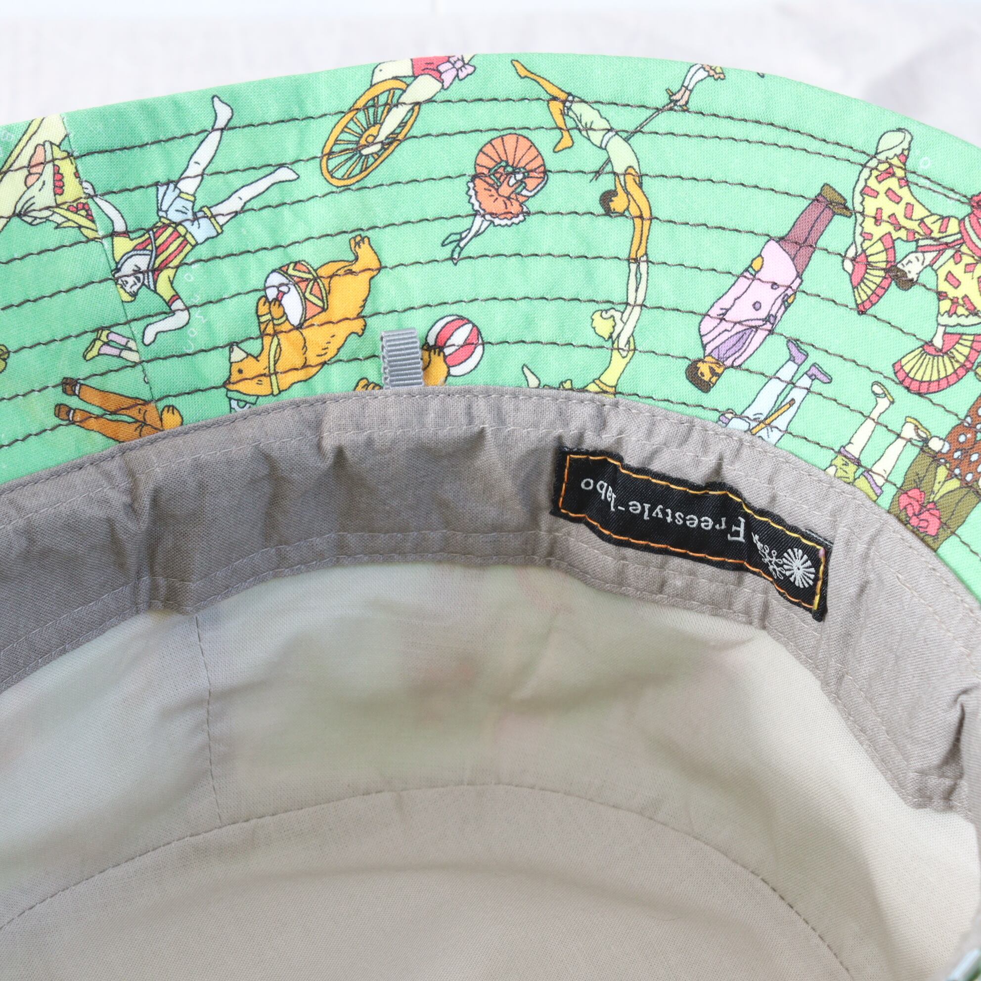 サーカス団がやってきた街のようなカラフルで楽しいプリント柄のハット